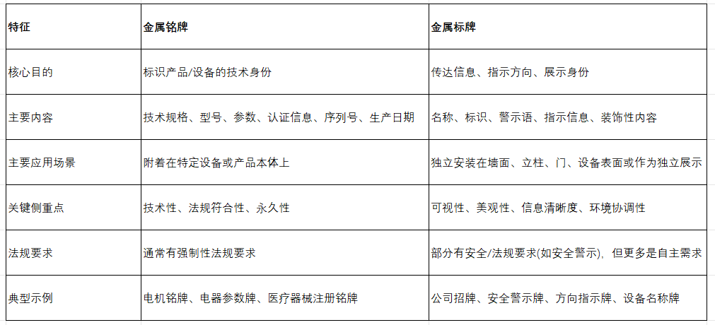 金屬銘牌和金屬標牌的區別